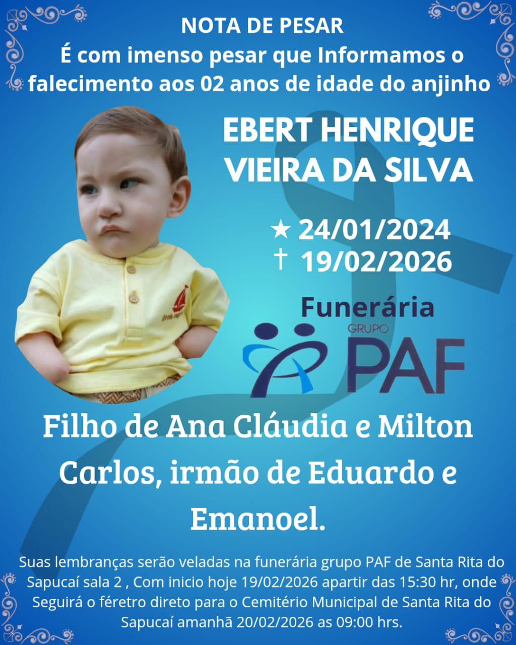 Nossos sentimentos à família enlutada.