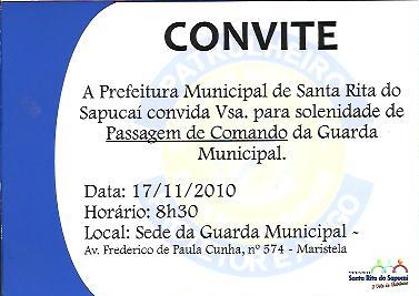 Foi com prazer que o Blog Vale Independente recebeu o convite para a passagem de Comando da Guarda Municipal de Santa Rita do Sapucaí.