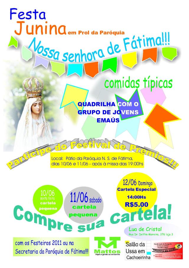 Como foi falado “a festa junina será um laboratório para a festa de outubro” e desejo que seja realmente agradável e familiar e aproveitar que estamos na semana do meio ambiente e que as crianças e jovens estão com essa ideia fresquinha ,para colocar em praticar o que está sendo trabalhado na campanha da fraternidade desse ano ¨Fraternidade e a Vida no Planeta
