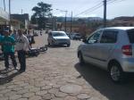 Em Santa Rita do Sapucaí, por volta das 12h30 o veículo VW Fox prata com placas EJH 4020 de Santa Rita do Sapucaí, conduzido por V.B.R., de 51 anos, seguia pela Av Frederico de Paula Cunha, quando foi virar na Rua Dr Oswaldo Campos do Amaral, mesmo dando seta, indicando a manobra, a moto Honda CG 150 Titan KS, de placa HIL 4586 de Santa Rita do Sapucaí, pilotada por W.R., de 18 anos, inabilitado não percebeu que o veículo iria virar e colidiu em sua lateral esquerda.O condutor da motocicleta juntamente com seu carona R.C.L.P, de 19 anos foram socorridos pela Equipe de Resgate do Pronto Atendimento Municipal.