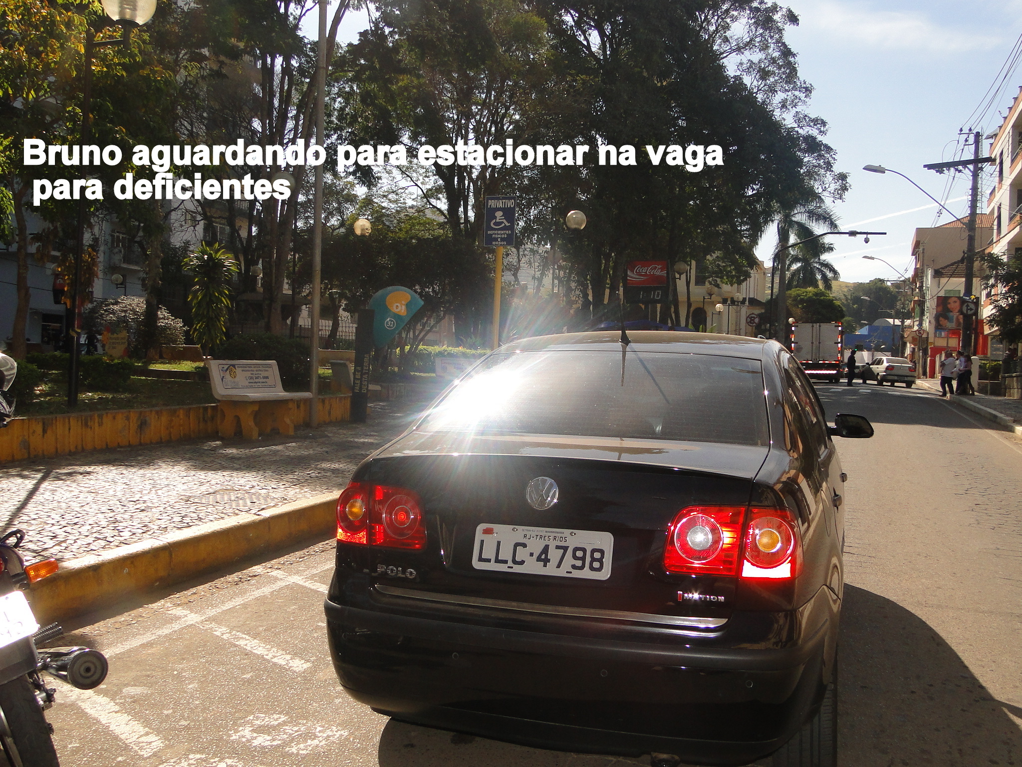 Foi conseguir estacionar! Há uma vaga para deficiente físico na Praça Santa Rita, porém ela é dividida com idosos.Bruno chegou com seu veículo, devidamente cadastrado no DETRAN e identificado com o selo de DEFICIENTE, no local e havia um veículo estacionado na vaga, porém sem nenhuma identificação de DEFICIENTE ou IDOSO.