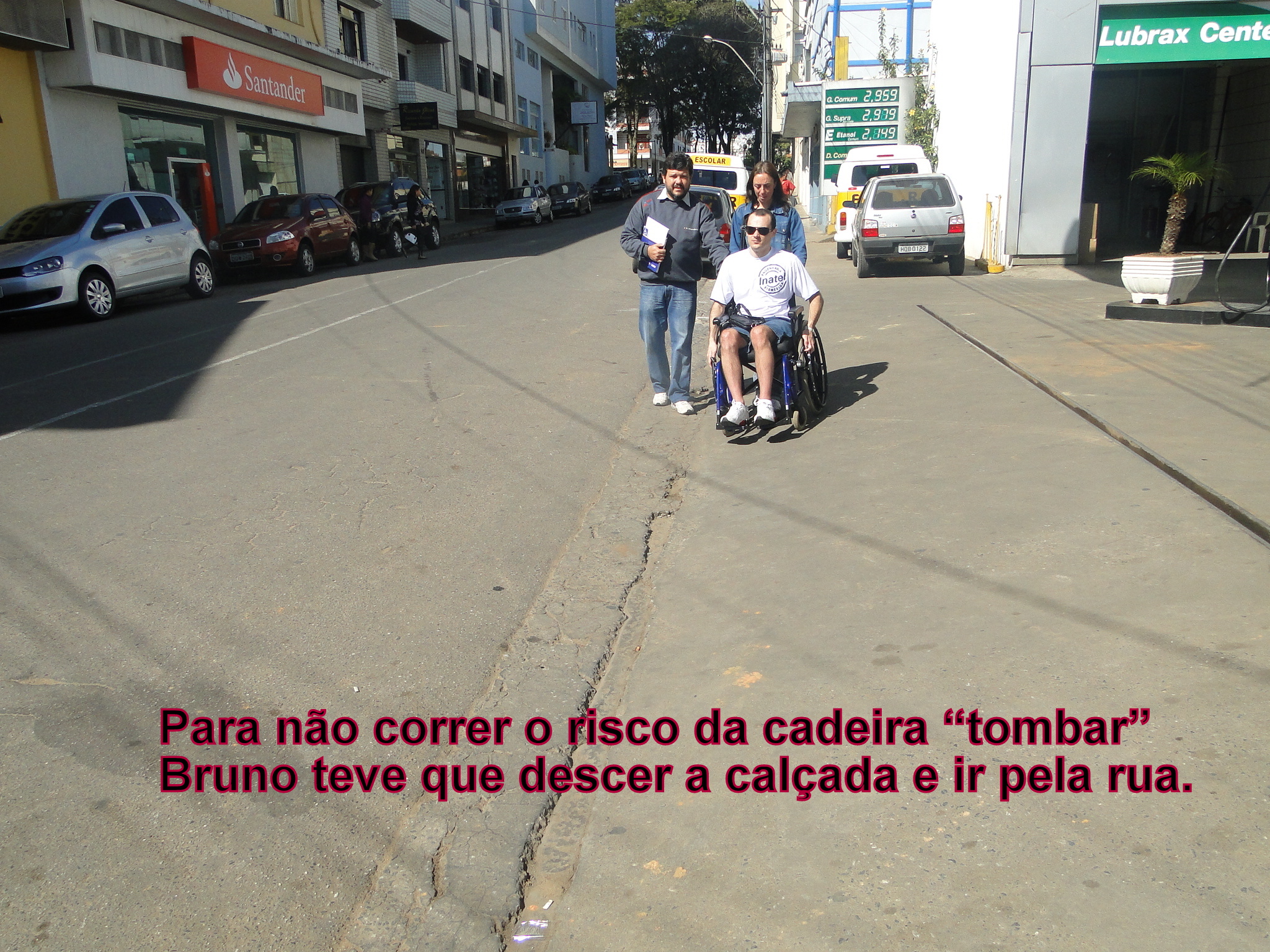 Na manhã deste sábado (02) ensolarado, em Santa Rita do Sapucaí, o Blog Vale Independente convidou o nosso amigo Bruno Medeiros, que é deficiente físico em virtude de um acidente automobilístico, para percorremos algumas ruas de nossa cidade, para mostrarmos as dificuldades que ele encontraria. Bruno faz parte de um grupo de deficientes, que está participando de um tratamento experimental – ELEVADOR ORTOSTÁTICO DINÂNICO, para ver a matéria –  CLIQUE AQUI