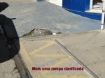No local da vaga para Deficientes e Idosos, apenas pintaram a faixa amarela na guia, o símbolo de defciente no chão e fixaram a placa indicando a vaga. Porém não rebaixaram a guia, não fizeram nenhuma rampa, vejam a dificuldade encontrada pelo Bruno para desembarcar do veículo.