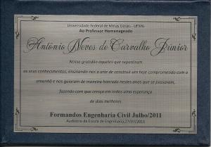 Júnior é muito querido pelos seus alunos, recentemente recebeu uma bela homenagem dos formandos em Engenharia Civil.