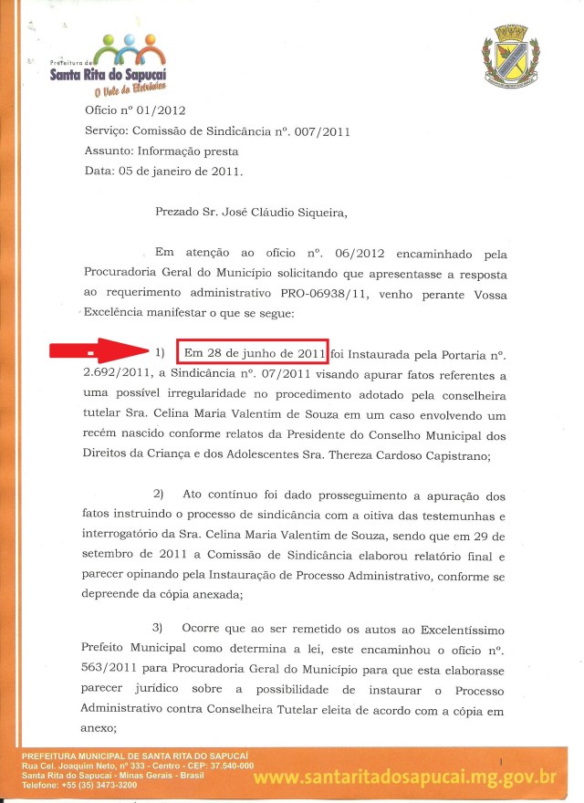 Vamos por partes, na foto abaixo podemos observar que a Sindicância foi instaurada no dia 28 de Junho de 2011.