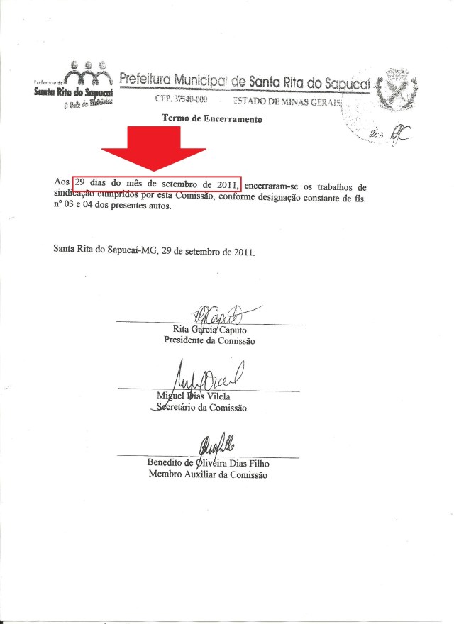 Os trabalhos dessa Sindicância se encerram no dia 29 de Setembro, conforme o documento abaixo: