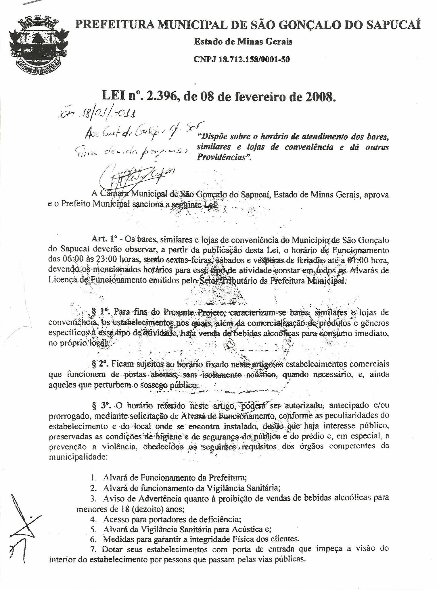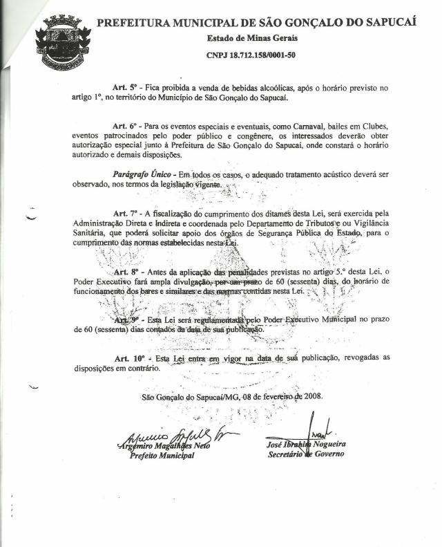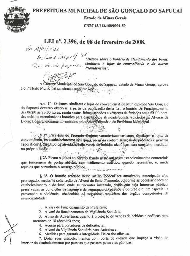 Conheçam a lei de São Gonçalo do Sapucaí, sobre horário de atendimento de bares