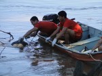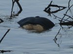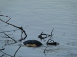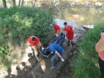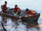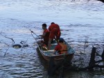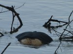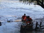 O corpo está enroscado em um galhada ás margens direita do rio.