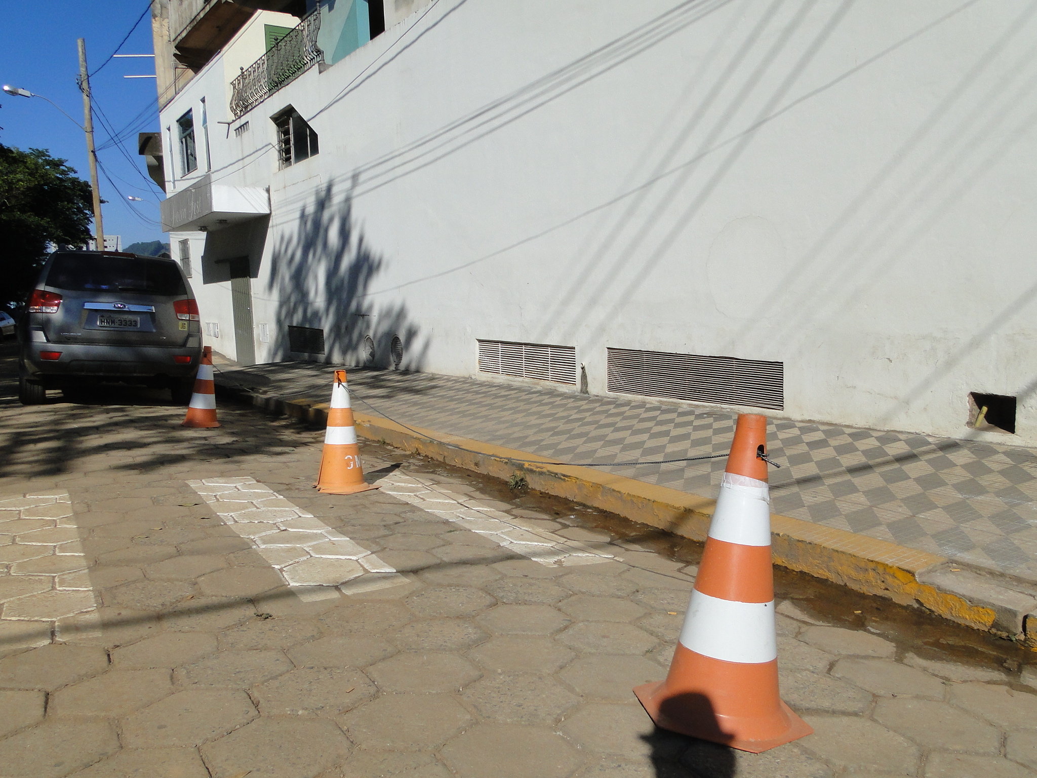 Dizem que esses cones da GUARDA MUNICIPAL são colocados para guardar a vaga para caminhão descarregar no almoxarifado municipal…mas perai…vai estacionar em cima da faixa??