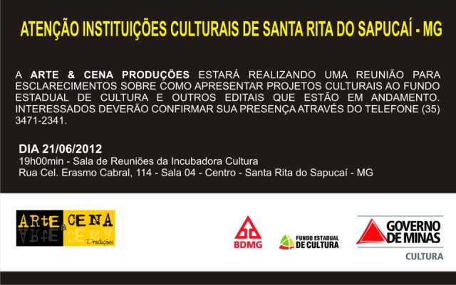 ATENÇÃO INSTITUIÇÕES CULTURAIS DE STA RITA