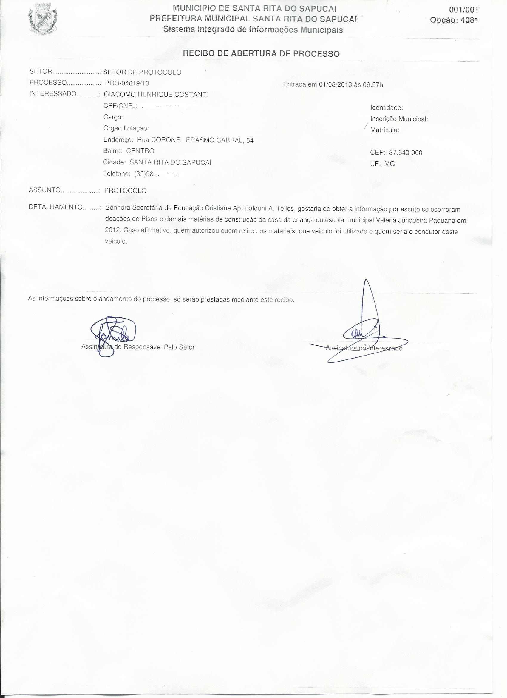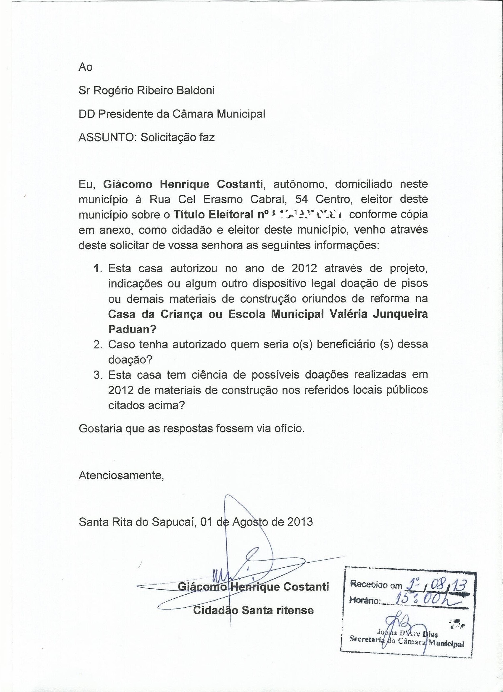 Diante dos fatos protocolamos requerimentos pedindo informações sobre essas possíveis doações.