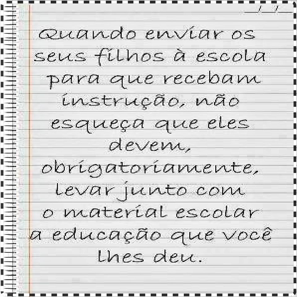 Já que vocês buscam uma educação de qualidade, favor frequentar as reuniões na escola de seu filho, participar da sua vida escolar, ensinar o valor da educação e a necessidade de se respeitar o próximo, valorizar o professor e cuidar bem da escola, pois do contrário, sua busca por mudança será pura hipocrisia.