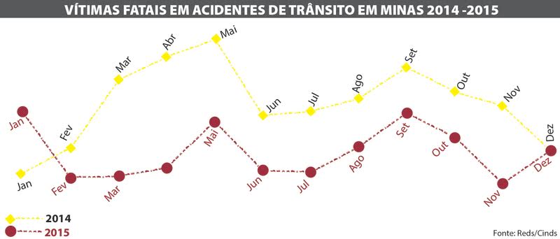 Os resultados estão no Diagnóstico de Acidentes de Minas Gerais 2014-2015, produzido pelo Centro Integrado de Informações de Defesa Social (Cinds) da Secretaria de Estado de Defesa Social (Seds).