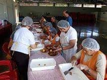 Voluntárias fazendo doces para a festa de Santa Rita de Cássia