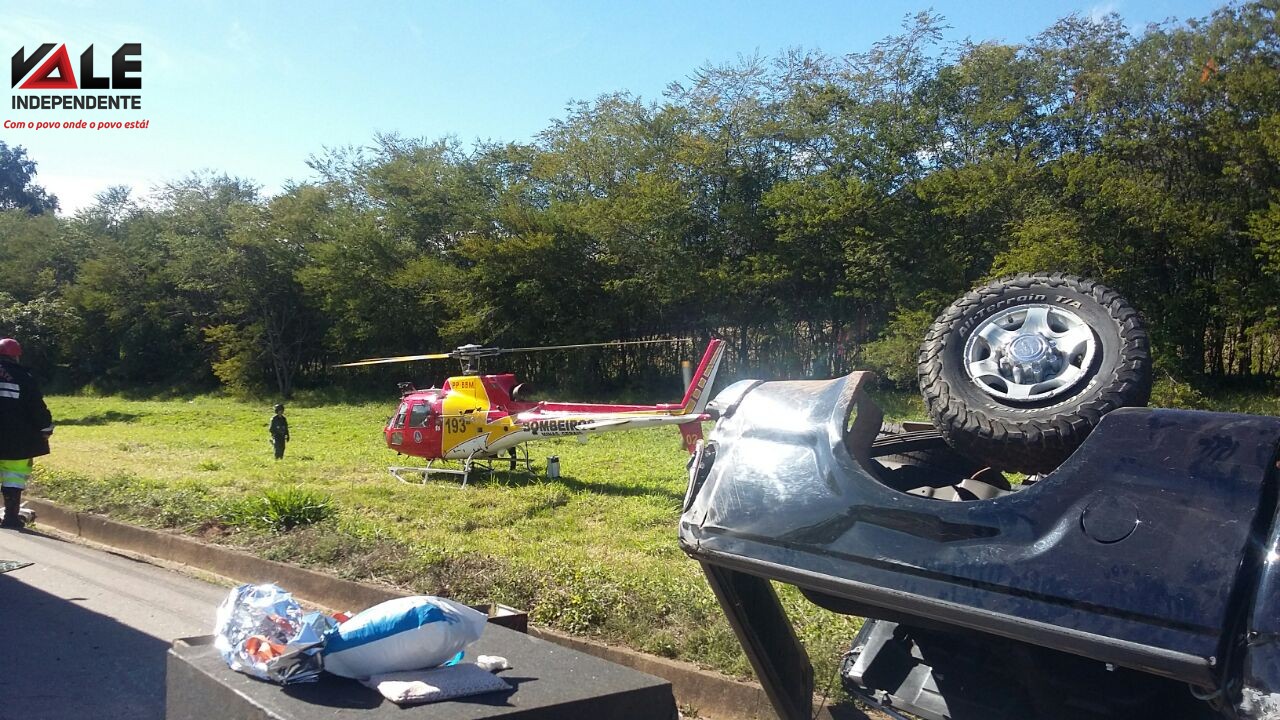 O veículo Ford/F250 placas de Congonhal MG, saiu de pista e capotou.