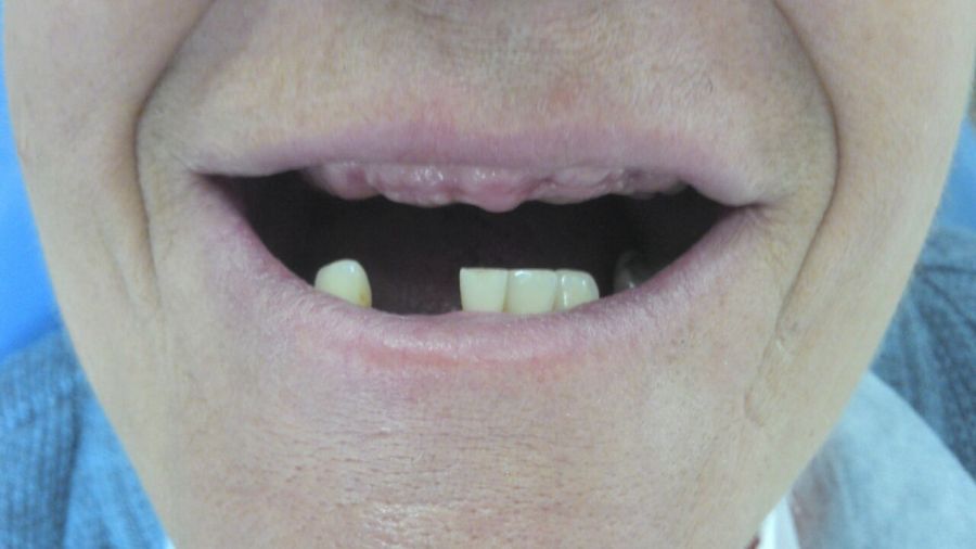 Paciente já sem os dentes superiores que estavam comprometidos.