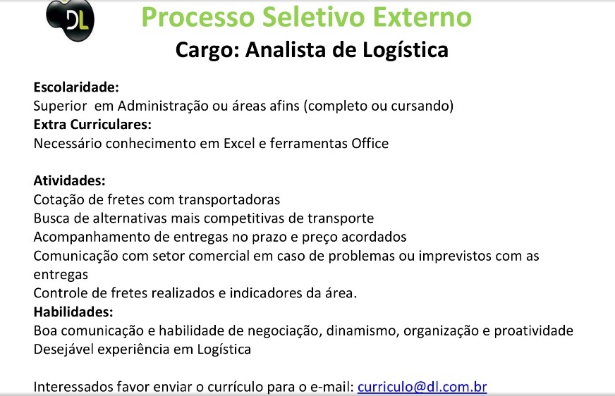 Oportunidade de Emprego – Analista de Logística