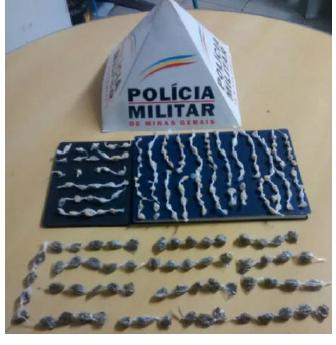 Os suspeitos ao perceberem a presença da PM, tentaram evadir, um deles dispensado algo no chão, contudo, este foi alcançado e ao ser verificado o invólucro plástico que foi jogado no chão, foi constatado 61 (sessenta e um) buchas de substância análoga à maconha e ainda 141(cento e quarenta e um) pedras de substância análoga ao crack, embaladas e pronta para comércio.