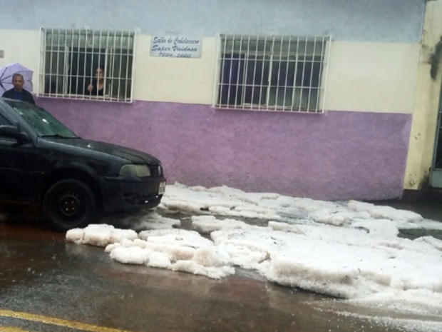 Chuva de granizo deixa camada de gelo em ruas de Ipuiúna