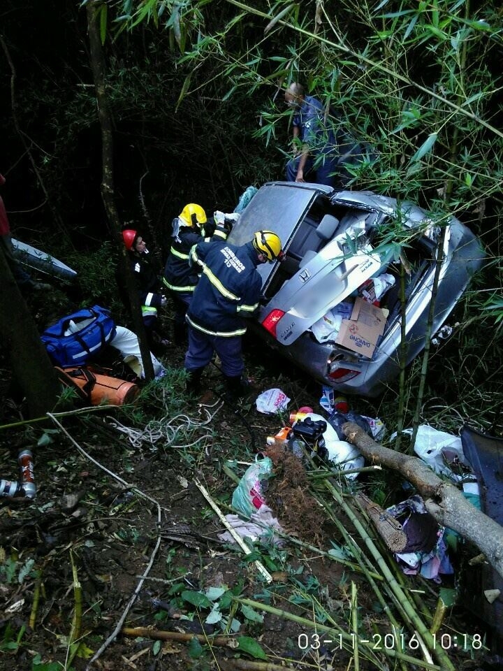 Sua condutora perdeu o controle, vindo a descer na ribanceira no km 933 da Fernão Dias, próximo a empresa Rexam.