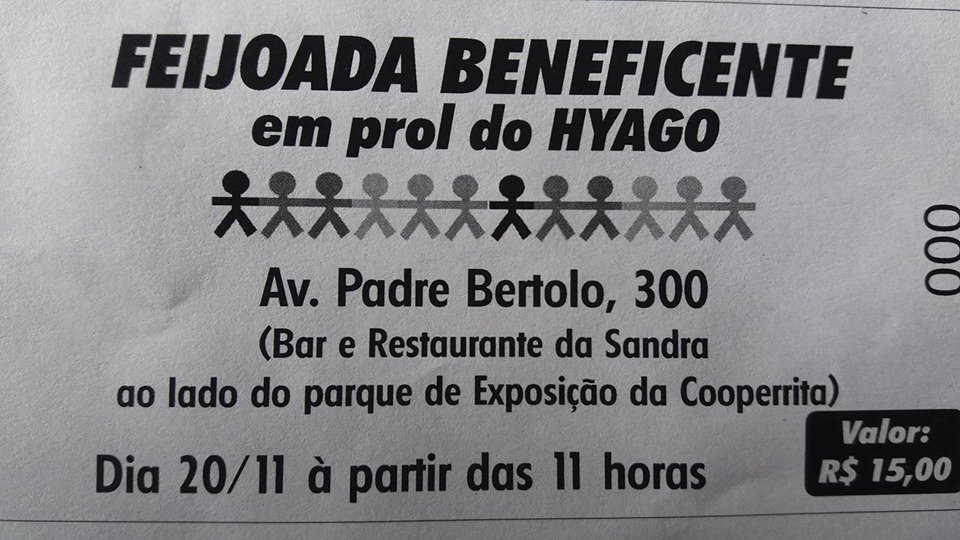 Faremos a feijoada para ajudar nas consultas do Hyago com o neurologista Dr.Fernando Gomes Pinto em São Paulo.