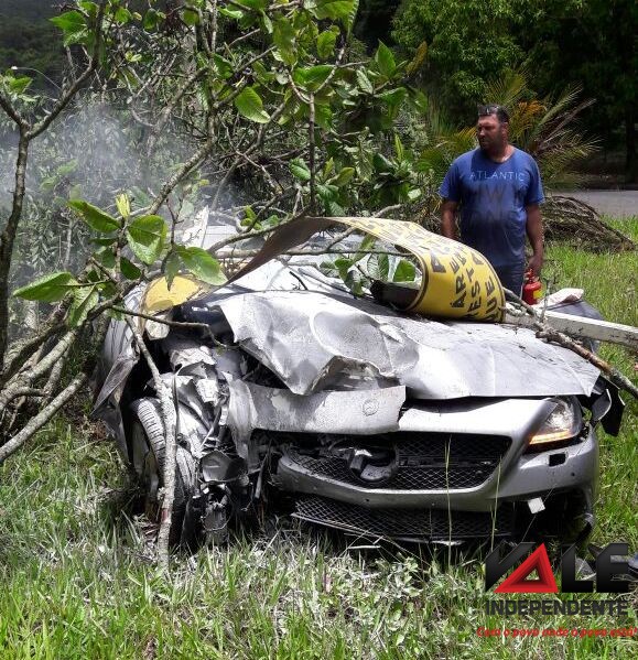 Conversível fica destruído após acidente