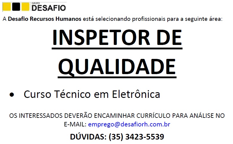 Oportunidade de Emprego – Inspetor de Qualidade