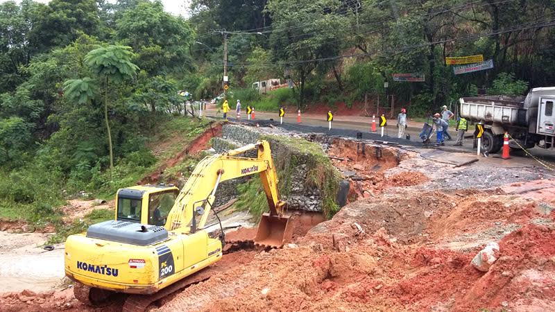 Equipes estão mobilizadas para restabelecer o trecho da rodovia, danificado pelas chuvas nos últimos dias