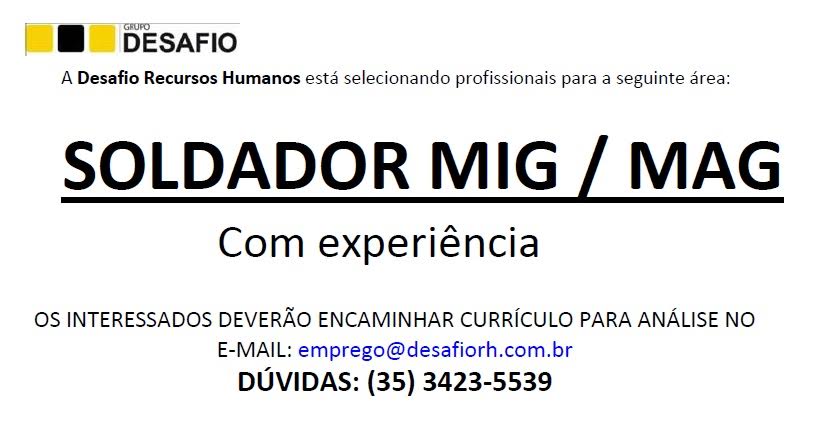 Oportunidade de Emprego – Soldador MIG/MAG