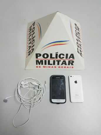 De posse das características os menores infratores foram localizados, sendo encontrado com eles o celular da vítima, um outro celular também produto de crime e uma bucha de substância com característica de maconha.