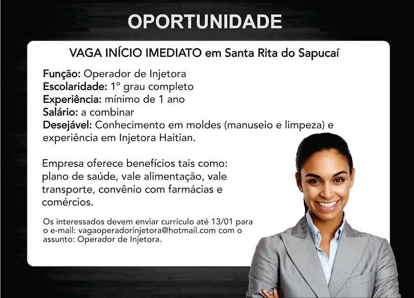 Oportunidade de Emprego – Operador de Injetora