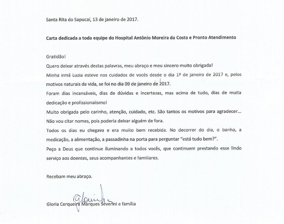 Agradecimento especial ao Hospital Antônio Moreira da Costa