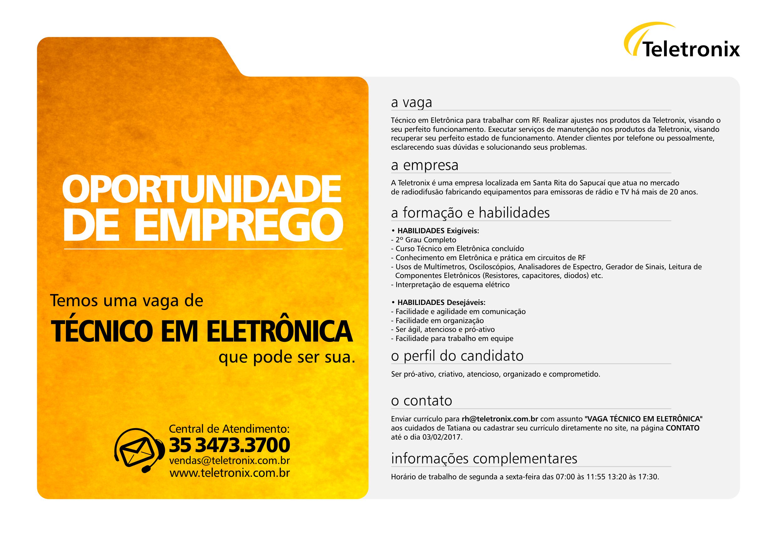 Oportunidade de Emprego – Técnico em Eletrônica