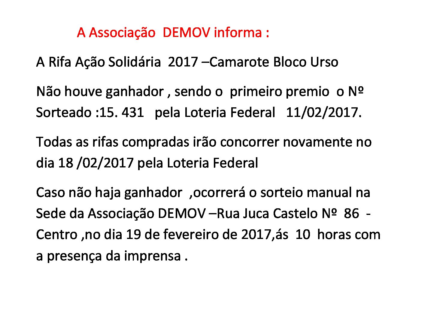 A Associação DEMOV informa
