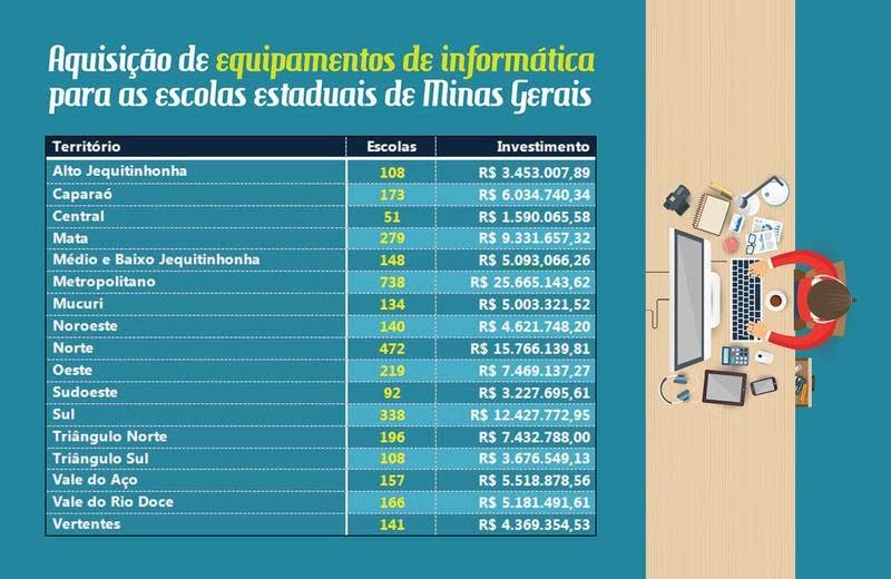 A Secretaria de Estado de Educação (SEE) investiu mais de R$ 145 milhões, em 2015 e 2016, na aquisição de mais de 45 mil equipamentos de informática para todas as 47 Superintendências Regionais de Ensino (SRE), Conselho Estadual de Educação e todas as escolas estaduais. Os aparelhos estão sendo entregues, montados e configurados para utilização em salas de informática e setores administrativos das escolas.