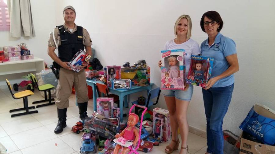 Corrente do Bem e Polícia Rodoviária Estadual entregam brinquedos à Brinquedoteca em Escola Municipal