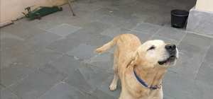 Esse cachorro lavrador que atende por Tob desapareceu hoje na hora do almoço.