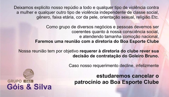 Maior patrocinador ameaça romper se Boa Esporte não desistir de Bruno