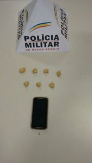 O autor de 19 anos foi submetido a busca pessoal e localizado um aparelho celular Motorola, e próximo a caçamba um invólucro plástico contendo sete porções de crack, embaladas de forma individual e prontas para serem comercializadas.