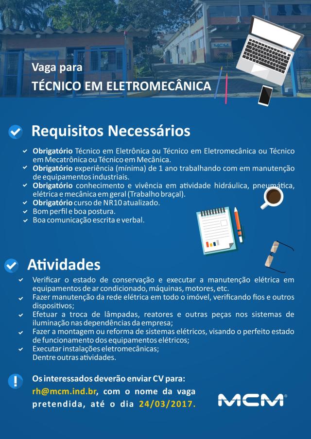 Oportunidade de Emprego – Técnico em Eletromecânica