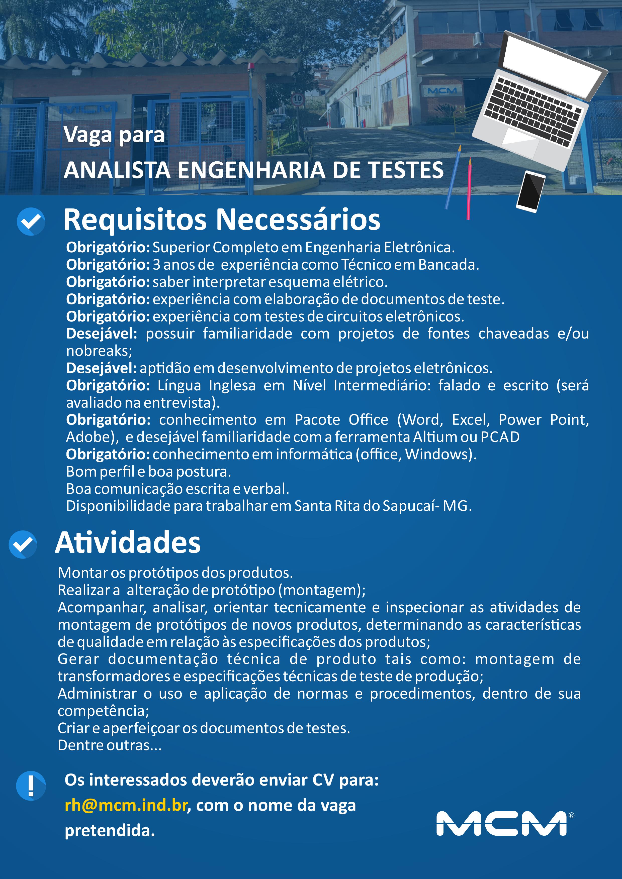 Oportunidade de Emprego – Analista Engenharia de Testes