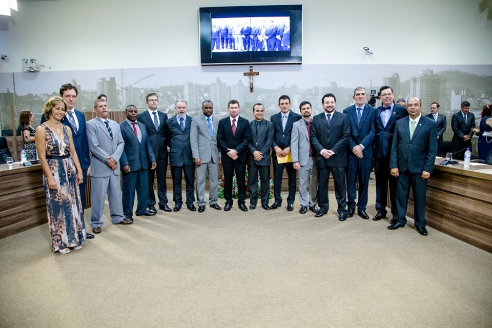 Presidiu a solenidade o presidente da Câmara, vereador Adriano da Farmácia (PR), o presidente da Escola do Legislativo, vereador Bruno Dias (PR), o vice-presidente da Câmara, vereador Leandro Morais (PPS), o prefeito de Pouso Alegre, Rafael Simões (PSDB), a secretária municipal de Educação e Cultura, Leila de Fátima Fonseca e o presidente da Associação Brasileira das Escolas do Legislativo e de Contas do Senado Federal, Flórian Madruga.