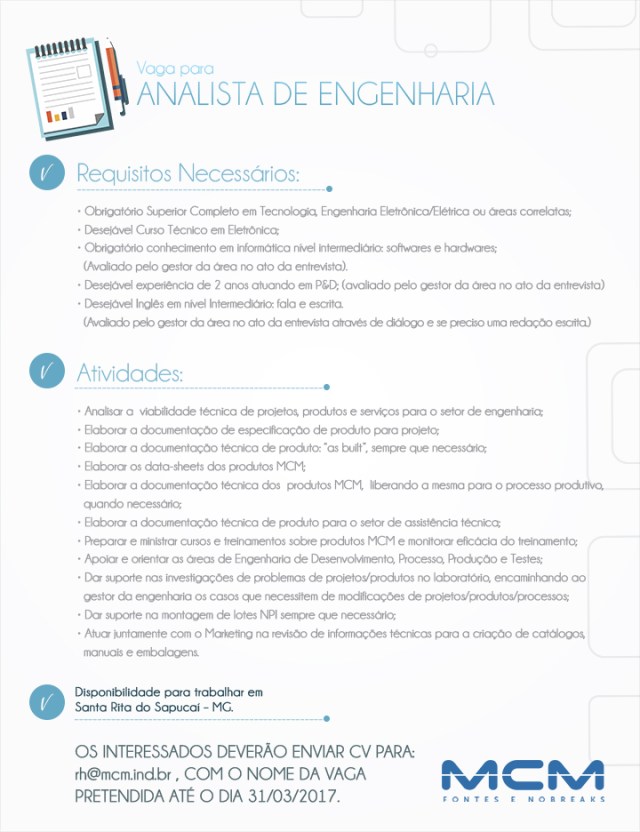 Oportunidade de Emprego – Analista de Engenharia
