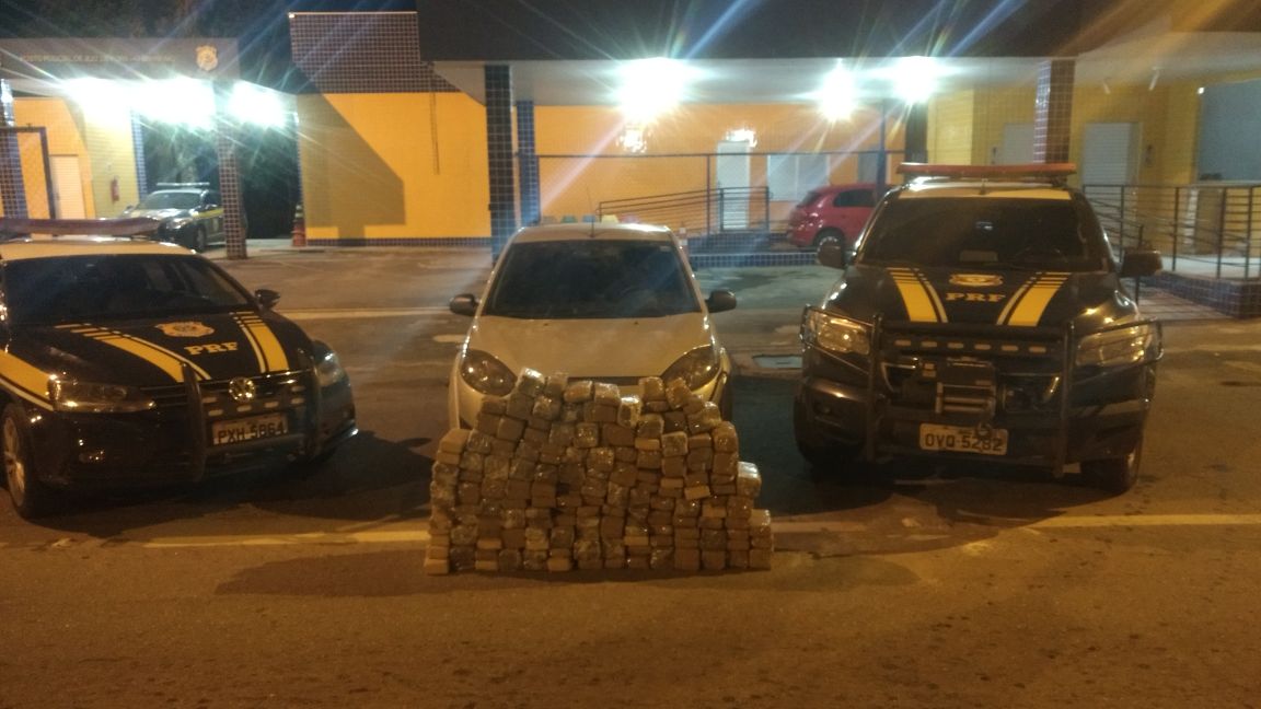 PRF apreende 209,5 kg de maconha em carro roubado