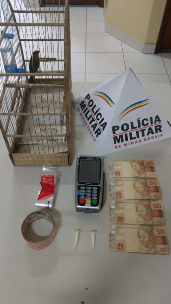 Em Pouso Alegre, a atividade na casa do suspeito levou a polícia a encontrar dois tubos contendo cocaína, sacos plásticos usados para embalar a droga, uma máquina de cartão de crédito e débito, um rolo de fita adesiva e, ainda, um pássaro da espécie canário da terra, da fauna silvestre, que não é permitido seu cativeiro.