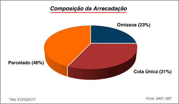 O superintendente de Arrecadação e Informações Fiscais da SEF, Leônidas Marques, ressalta que, apesar do momento de dificuldade econômica que o país atravessa, houve aumento na quantidade de pagamentos, em relação a 2016, passando de 74,7% para 76,5% do valor total emitido. “Historicamente, o percentual de recebimento do imposto vai aumentando ao longo do ano e chega a 95% até o fim de dezembro”, afirma.