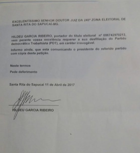 Hildeu Garcia desfilia do PDT