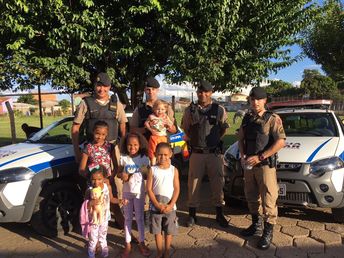 Em Pouso Alegre, militares do GEPAR – Grupo Especializado de Policiamento em Áreas de Risco, que atuam no bairro São Geraldo, distribuíram chocolates para as crianças da comunidade.