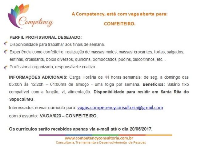Oportunidade de Emprego – Confeiteiro