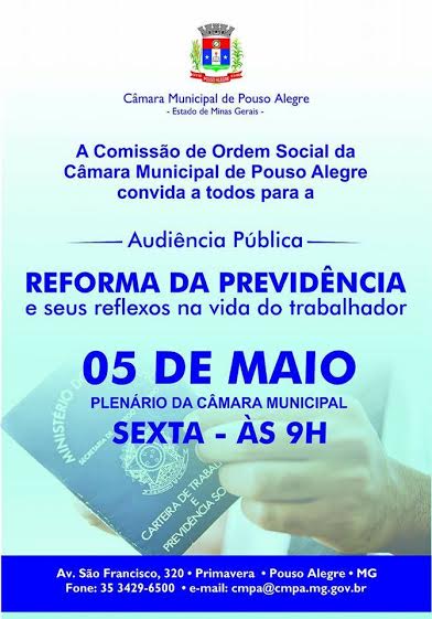 Câmara Municipal de Pouso Alegre – Comissão de Ordem Social realiza audiência para debater Reforma da Previdência